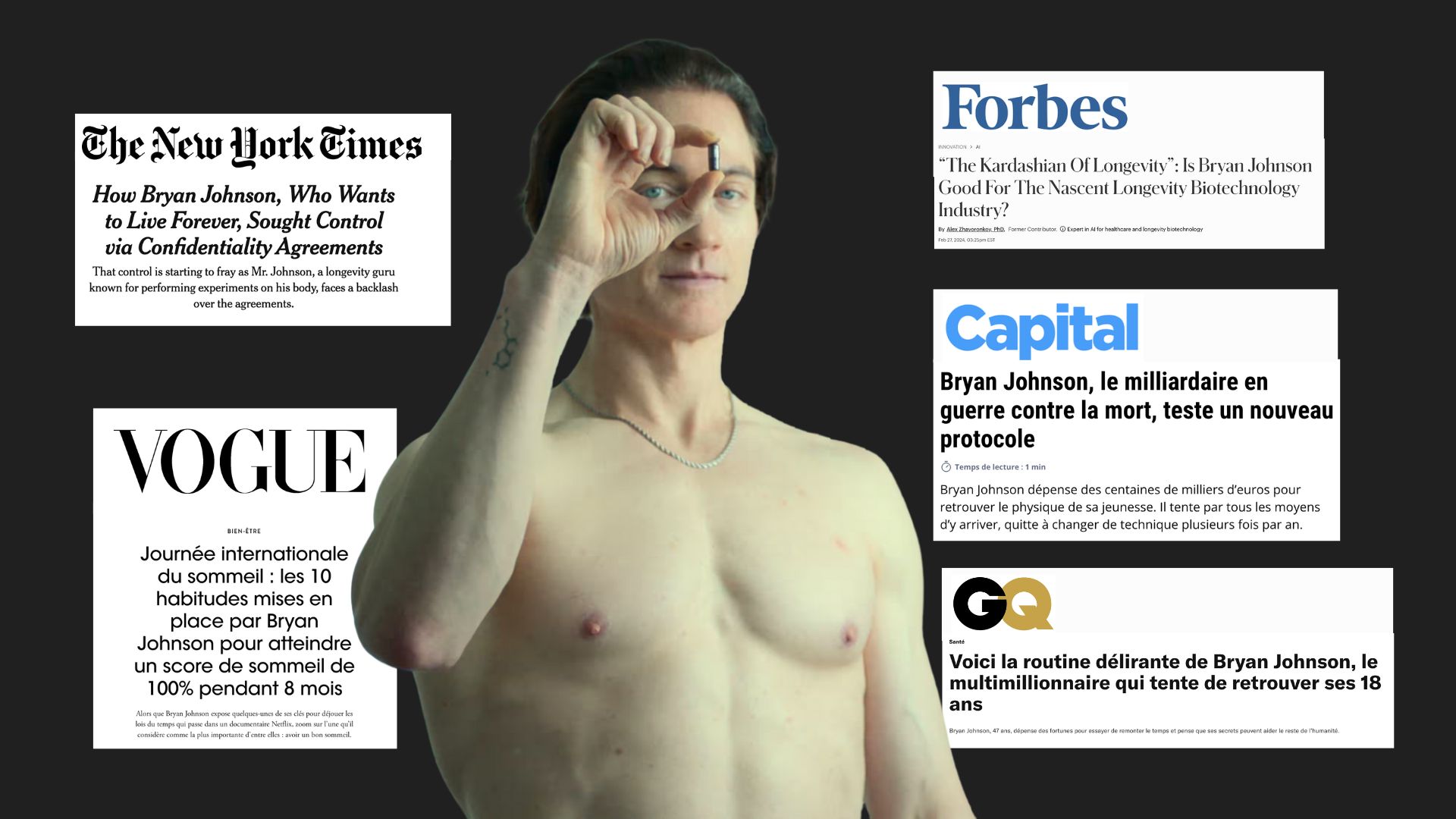 Il s’expose torse nu sur fond de courbes biologiques, évoque en toute détente ses transfusions de sang avec son fils (oui, vraiment) et partage sans filtre l’état de son transit intestinal. Le tout, au nom de la science et du bien commun (personne ne lui a jamais rien demandé, mais bon). Certains le voient comme un visionnaire, d’autres comme un sociopathe mégalo. Qu'importe, il continue.